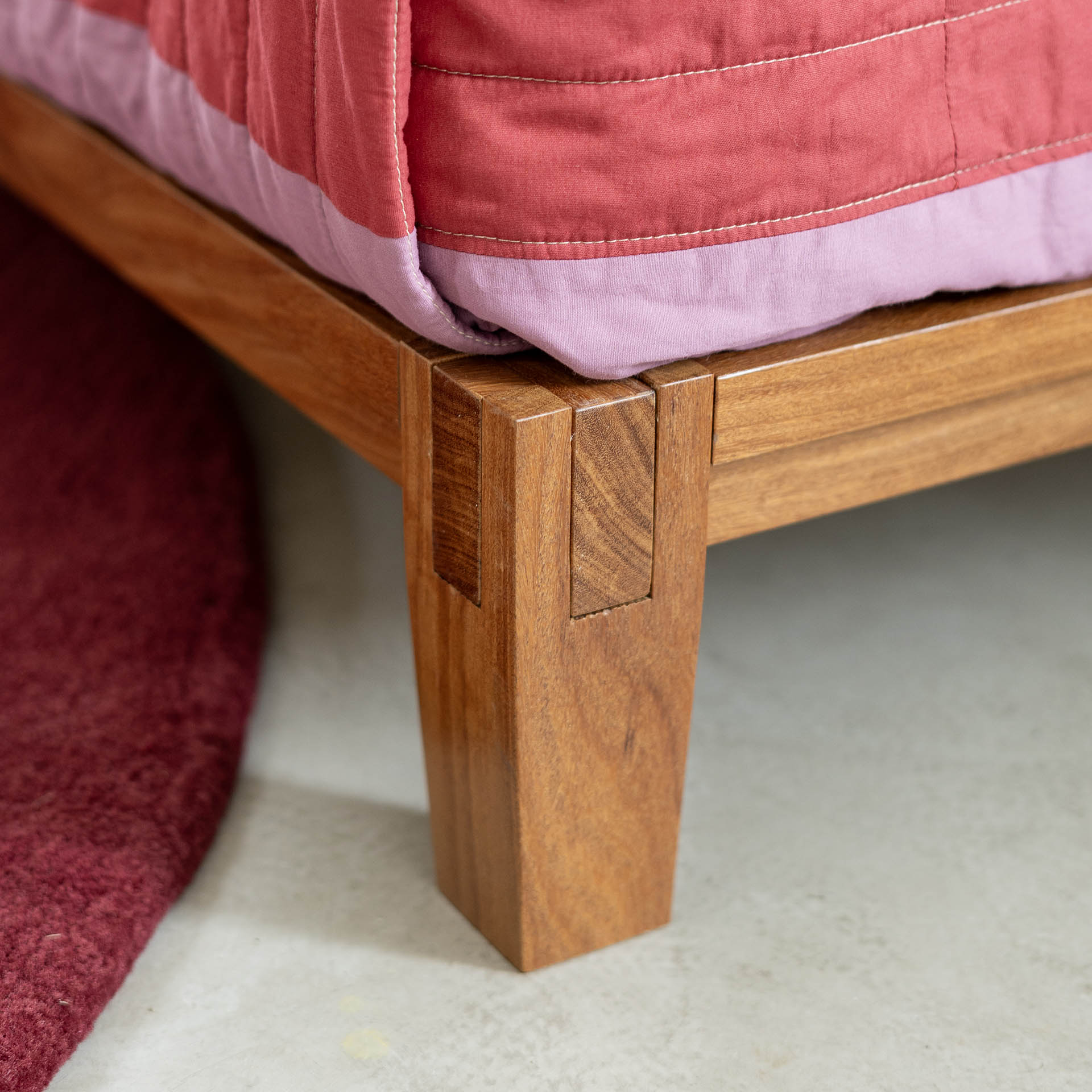 Uma cama com estrutura em madeira maciça e 100% encaixes, inspirados na marcenaria oriental.