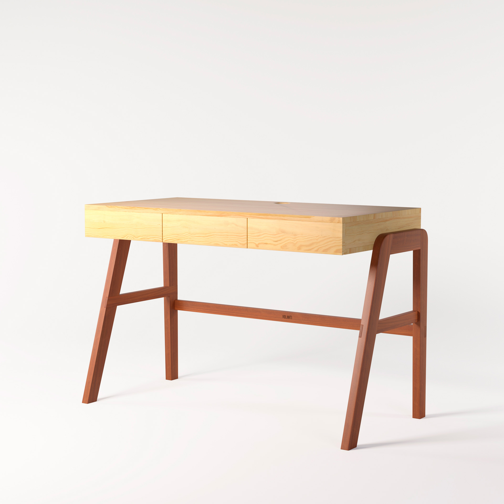O home office chegou para ficar. Cada vez mias precisamos de um local apropriado para trabalhar e uma escrivaninha dedicada para isso ajuda a manter a concentração, foco e fazer um trabalho de qualidade. Com 3 gavetas a escrivaninha Moema foi criada para adaptar-se aos mais diversos ambientes. Com pés em sucupira e tampo e pinus a escrivaninha tem um local dedicado para esconder réguas e extensões na parte de trás.